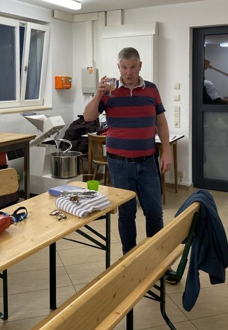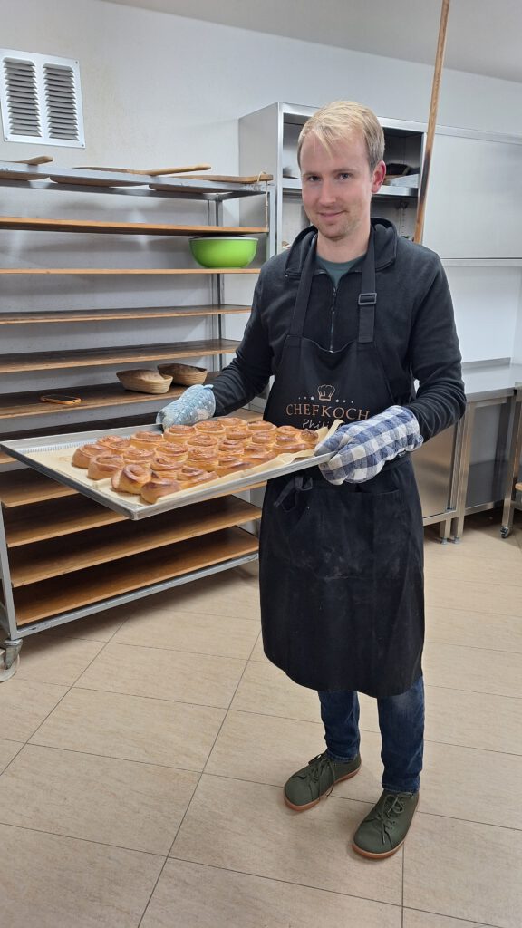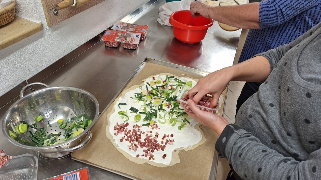 Der Ofen wurde bereits zwei Stunden vor offiziellem Beginn angeworfen und die HelferInnen durften später am Abend dann frisch im Ofen gebackenen Flammkuchen und Zimtschnecken genießen. Diese wurden vom Vorstandsteam finanziert und vorbereitet. Auch bestand die Möglichkeit selbst mitgebrachten Brotteig oder andere Teigspeisen im Ofen des Backhauses selbst zu backen. Auch dieses Angebot wurde gern angenommen. Alle Anwesenden halfen bei der Teigbelegung fleißig mit und auch das Aufräumen erfolgte im Team. So fand ein gemütlicher Abend mit gutem Federweißen, Limonade und anderen leckeren Getränken und dem frischen Flammkuchen in gemütlicher, leider auch eher kleiner Runde, gegen 22 Uhr sein Ende.