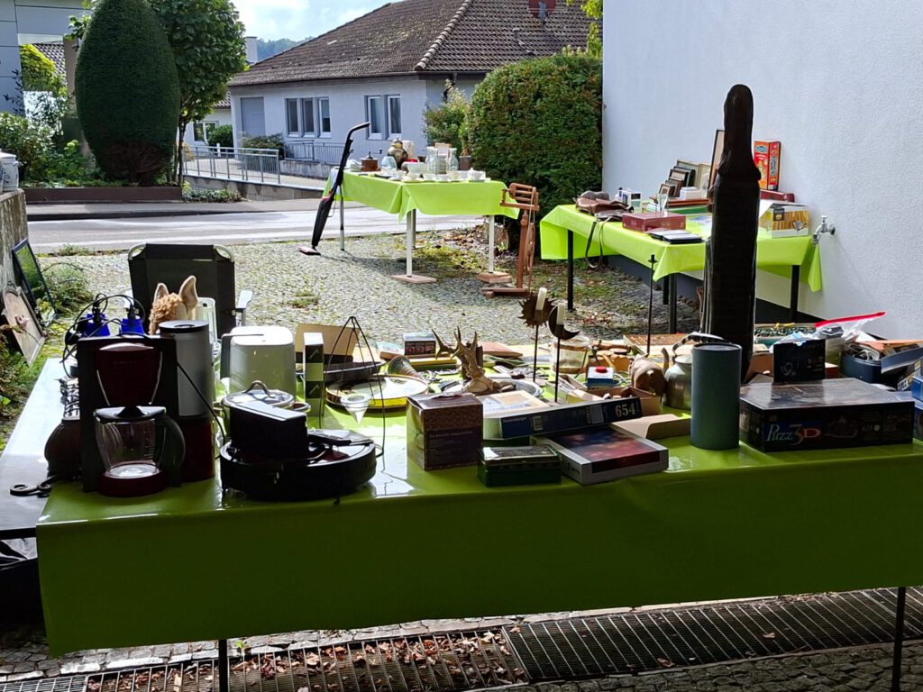 Bereits zum dritten Mal fanden am vergangenen Samstag die Garagenflohmärkte in der Landhaussiedlung statt. Trotz Vorankündigungen in Zeitung und Internet erfreute sich dieser leider in diesem Herbst keiner allzu großen Besucherzahl. Das lässt sich sicherlich auch auf das kühle und unbeständige Wetter zurückführen, nicht zuletzt gab es auch zeitgleich in den umliegenden Städten und Gemeinden weitere Flohmärkte und Basare. Auch die lange Laufwege innerhalb der Siedlung zwischen den verschiedenen Flohmarktständen scheinen mit ein Grund für die leider eher geringe Resonanz an BesucherInnen gewesen sein.